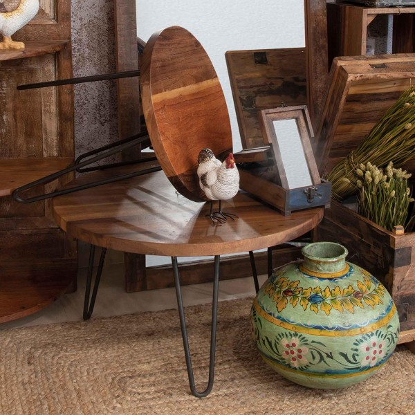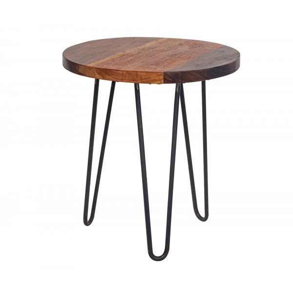 SIGNES GRIMALT Sellette Ronde, Plateau en Bois Exotique et Pied en métal, Hauteur 50 cm