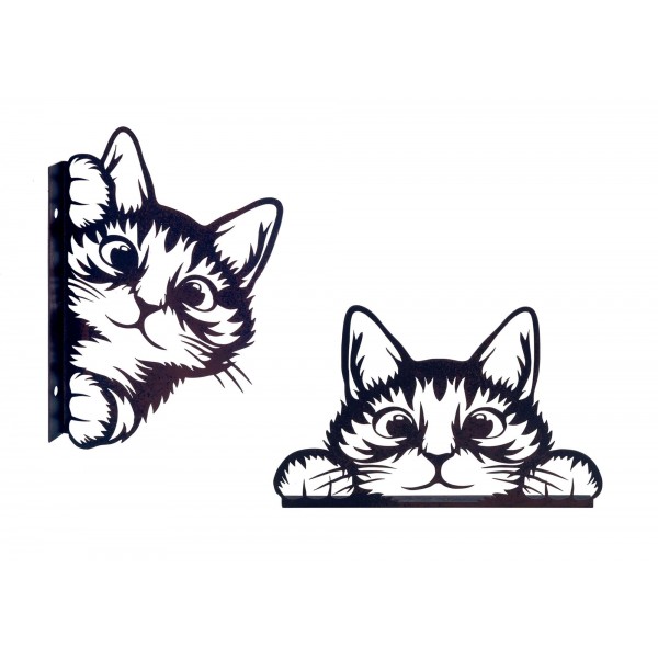 SIGNES GRIMALT Set 2 silhouettes Chats surprises à poser ou visser, Métal noir ambré, H 20 cm