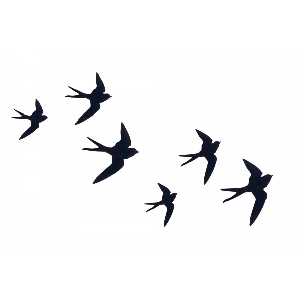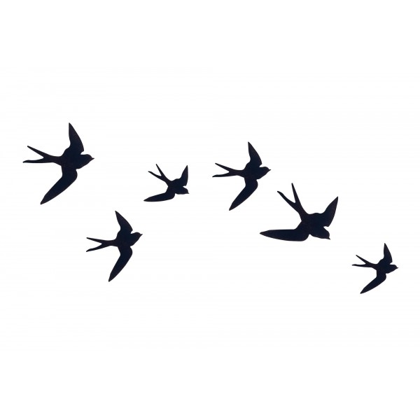 SIGNES GRIMALT Déco Murale métal : Set 6 hirondelles noires différentes, Placement libre, Hauteur 24 cm (Grande)