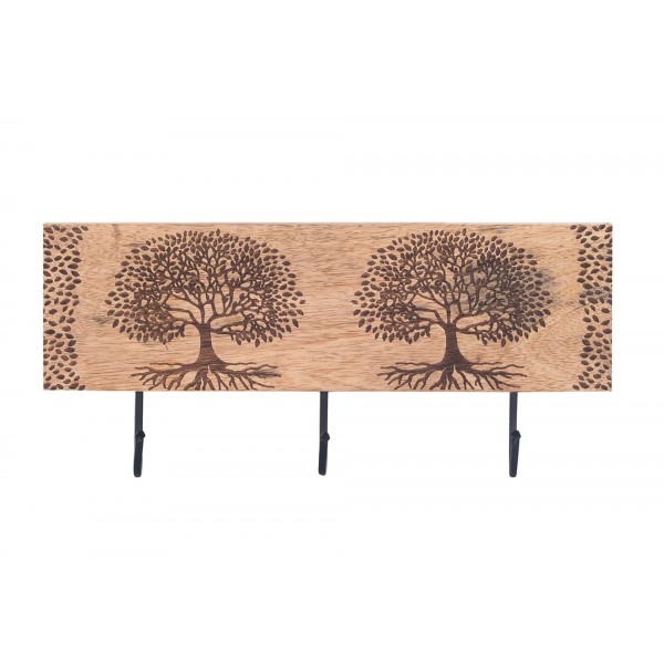 SIGNES GRIMALT Patère Rétro en bois : Modèle Arbres de vie, 3 Crochets de suspension, Longueur 38 cm