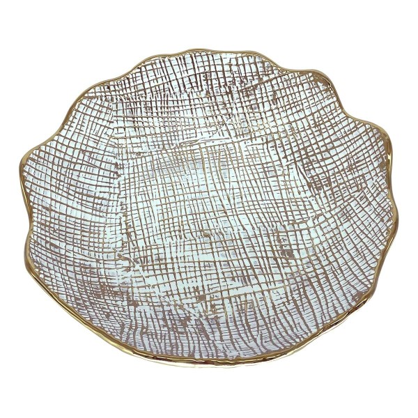 Coupe contemporaine en céramique, Vide-Poche ou Plat décoratif Design, Blanc et doré, diamètre 30 cm