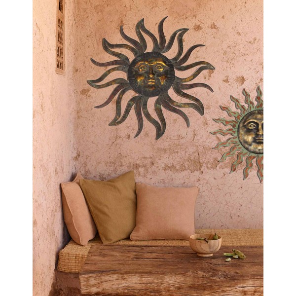 SIGNES GRIMALT Soleil mural stylisé en métal ajouré, Modèle Noir et Doré, Collection Sole Terra, Diam 90 cm