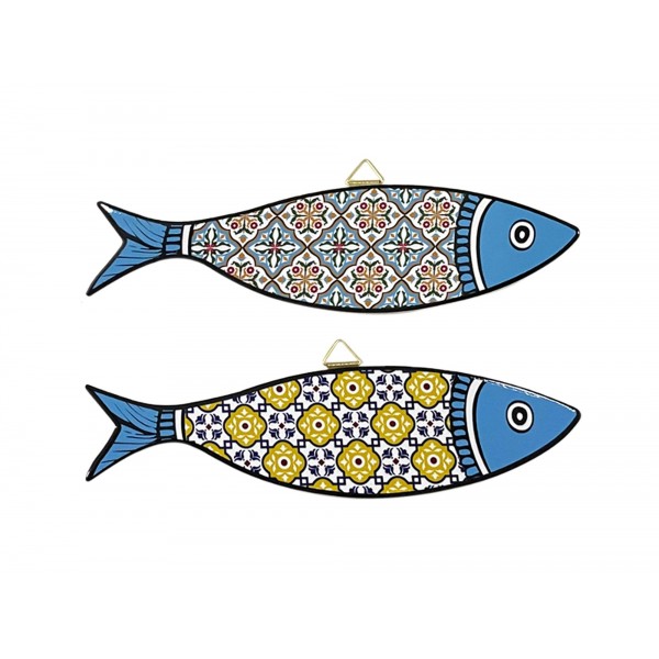 SIGNES GRIMALT Set 2 sardines murales décoratives, Motifs Rétros Carreaux de ciment, Longueur 30 cm