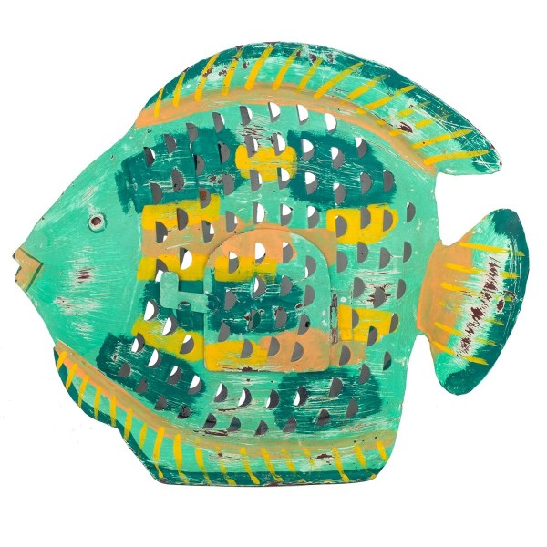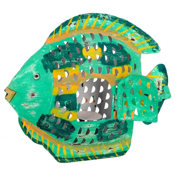 SIGNES GRIMALT Poisson Lanterne décoratif avec Porte Bougie, Composition 100% métal intérieur extérieur, Vert, Longueur 43 cm