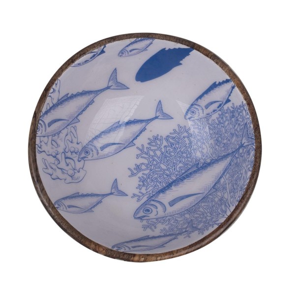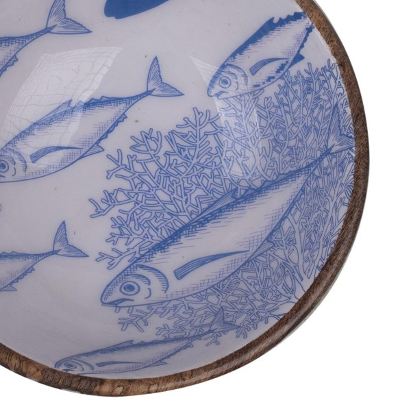 Coupe de Service en manguier Sardines Bleues, Collection Marine Douarnenez, diamètre 20 cm