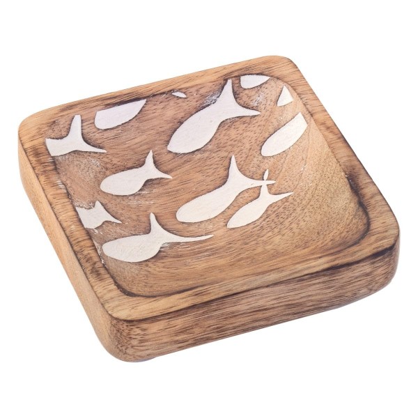 Set 2 coupelles apéritif Banc de Poissons Blancs en manguier, Collection Marine Martigues, Longueur 11 cm