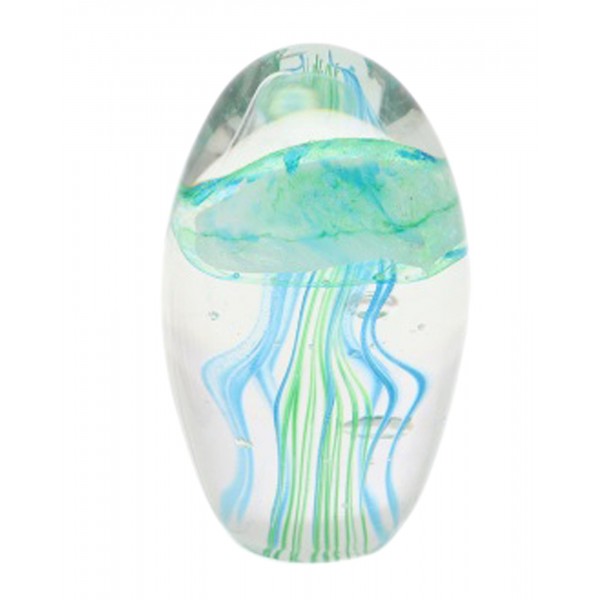 Presse Papier Décoratif et Sculpture Verre, Méduse Ondulante, Bleu Cyan, Hauteur 7 cm