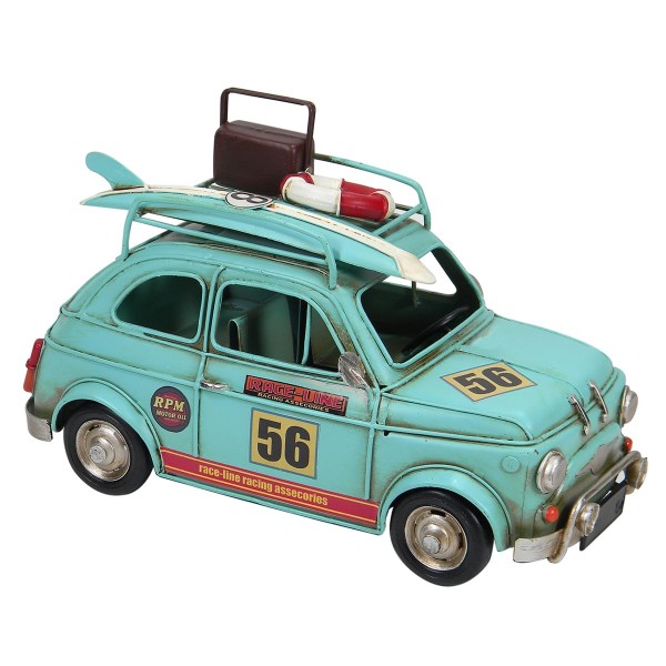 SIGNES GRIMALT Miniature véhicule topolino, Voiture Ancienne Bleu Cyan, Planche de Surf et marquage 56, Longueur 27 cm