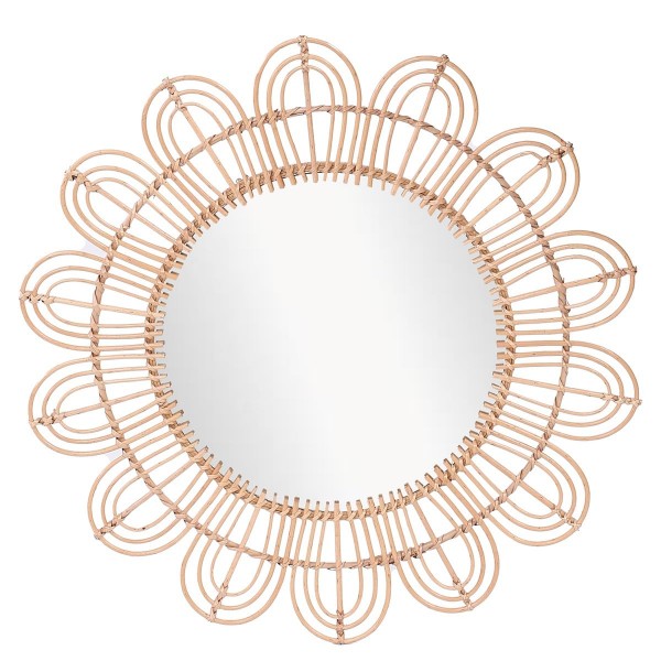 SIGNES GRIMALT Grand Miroir Mural Tournesol et encadrement en rotin, diamètre 90 cm