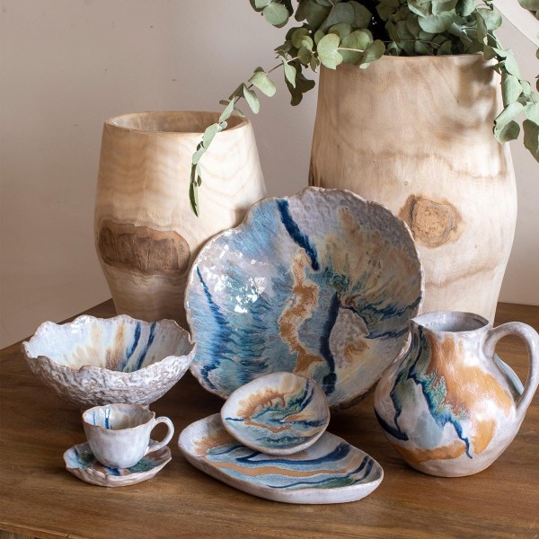 Pichet à Anse décoratif en grès, Couleurs Terre et Mer, Collection Marine Concarneau, diamètre 30 cm