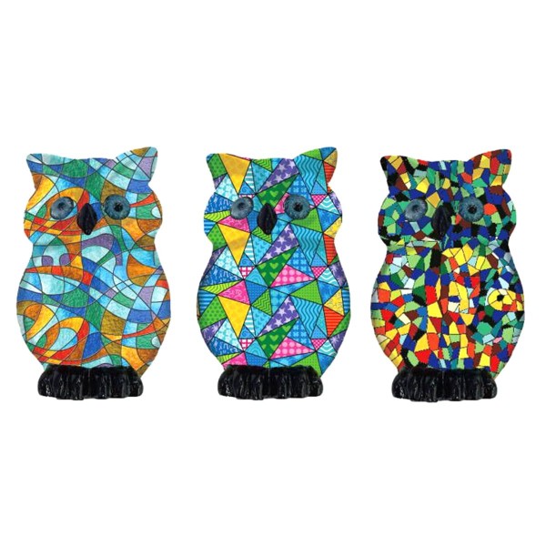 SIGNES GRIMALT Set 3 Figurines hiboux à Poser, Motifs mosaïques colorées, Collection Tropik, Hauteur 5 cm