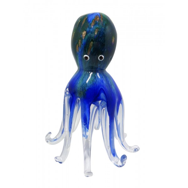 SIGNES GRIMALT Pieuvre Bleue, Presse-Papier et Figurine décorative en Verre Soufflé, Hauteur 17 cm