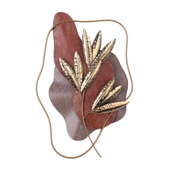 SIGNES GRIMALT Décoration Murale Métal Feuilles Dorées – Design Abstrait Terracotta et Taupe – 51 x 34 cm
