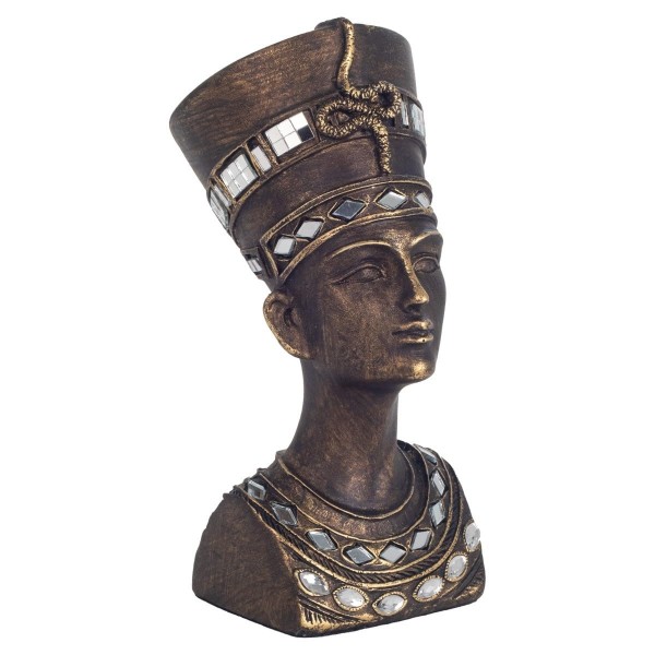 SIGNES GRIMALT Statue Buste de Néfertiti, Reine d'Egypte, Composition résine et matières Originales, H 18 cm