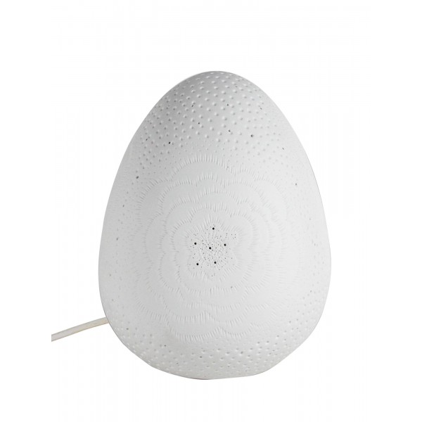 SIGNES GRIMALT Lampe d'ambiance et Veilleuse, modèle Oeuf, Porcelaine blanche ajourée, Hauteur 21 cm