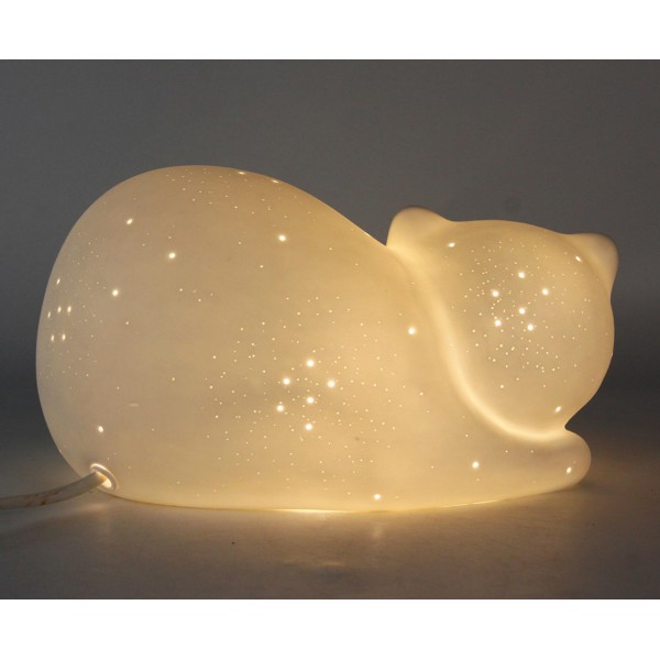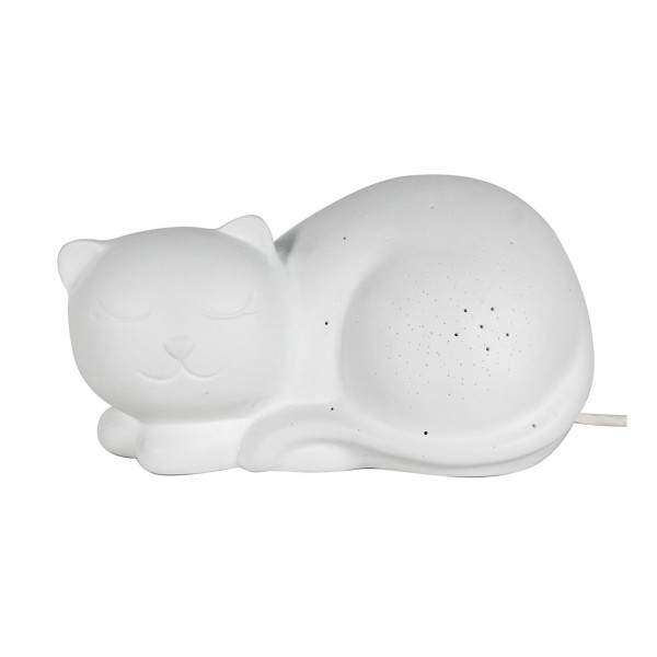 SIGNES GRIMALT Lampe et Veilleuse, modèle Chat Blanc enroulé, Porcelaine ajourée, Longueur 25 cm