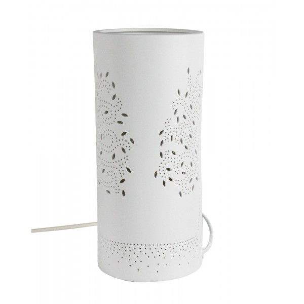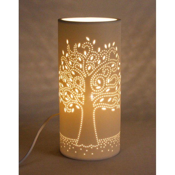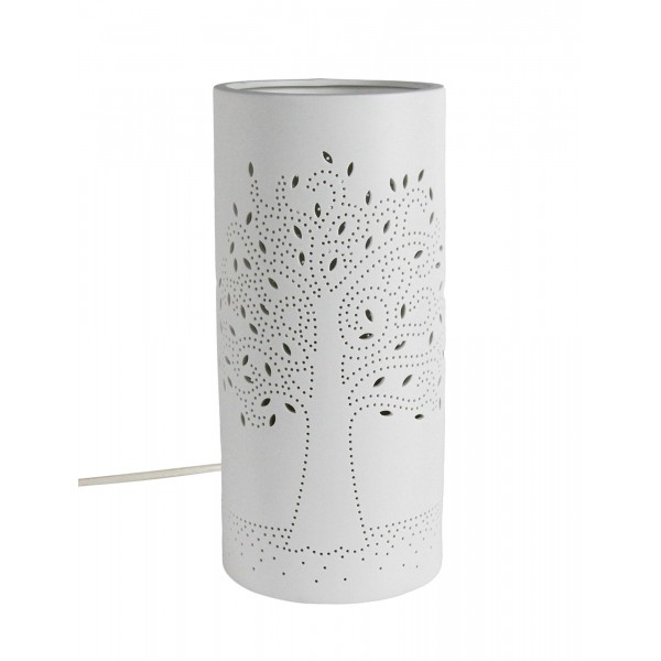 SIGNES GRIMALT Lampe d'ambiance et Veilleuse, modèle Arbre de vie, Porcelaine blanche ajourée, Hauteur 28 cm