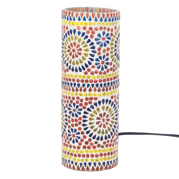 SIGNES GRIMALT Lampe ethnique d'inspiration orientale, Verre et Céramique colorée, Rouge, Jaune, Bleu, Hauteur 30 cm