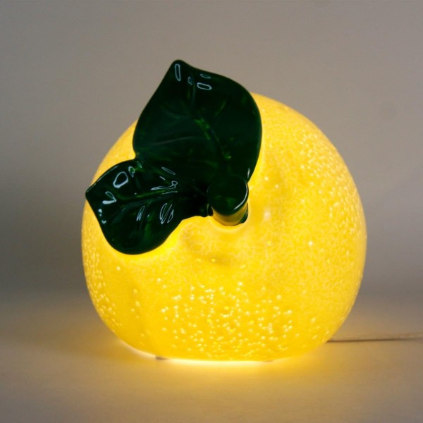 SIGNES GRIMALT Citron jaune design, lampe d'ambiance et Veilleuse en porcelaine, finition brillante satin, longueur 23 cm
