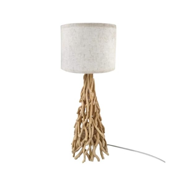 SIGNES GRIMALT Lampe en Bois de Mûrier 64 cm – Pied Naturel Sculpté & Abat-jour Tissu – Luminaire Artisanal Douille E27