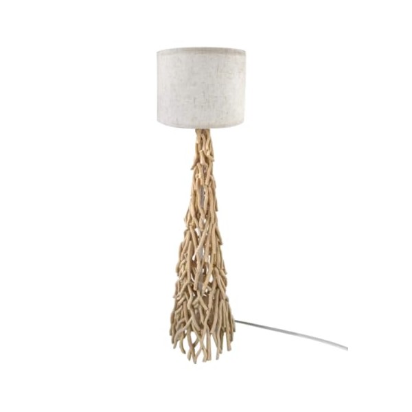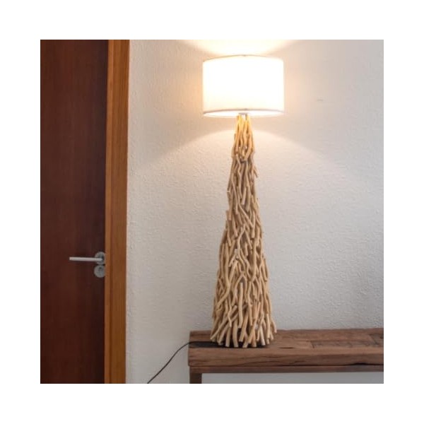SIGNES GRIMALT Lampe sur Pied en Bois de Mûrier 106 cm – Grand Luminaire Artisanal Naturel avec Abat-jour Tissu – Douille E27