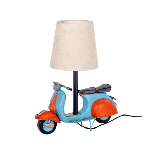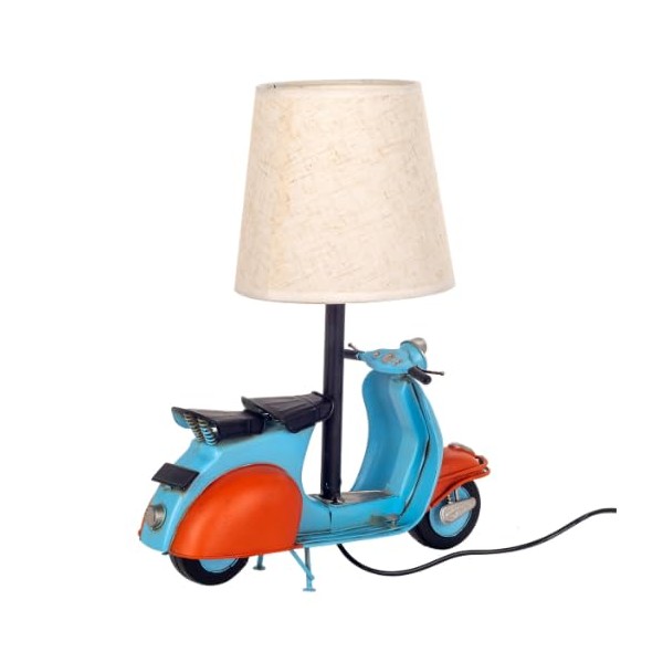 SIGNES GRIMALT Lampe de Table Scooter Vintage en Métal 34 cm – Bleu et Rouge – Abat-jour Tissu – Douille E14