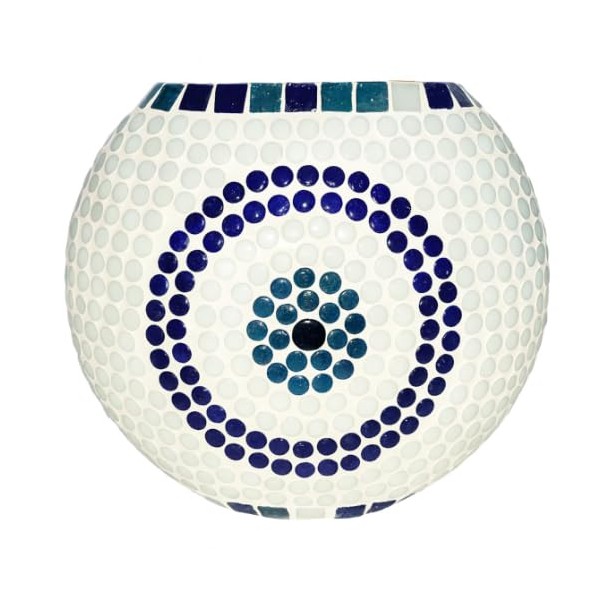 SIGNES GRIMALT Lampe Mosaïque en Verre et Résine 26 cm – Motif Cercle Bleu & Blanc – Luminaire Artisanal Douille E14