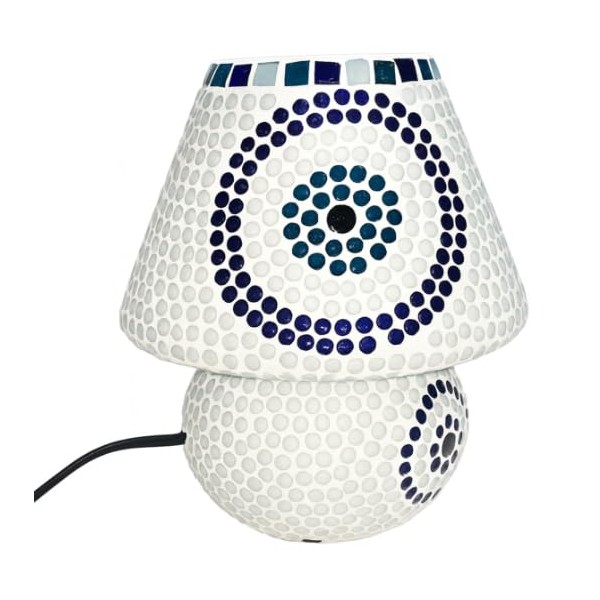 SIGNES GRIMALT Lampe Mosaïque en Verre et Plâtre 23 cm – Motif Cercle Bleu & Blanc – Luminaire Artisanal Douille E14