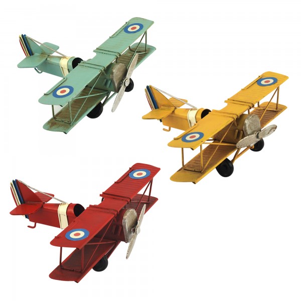 Avion Biplan en métal, Modèle jaune L 13,5 cm