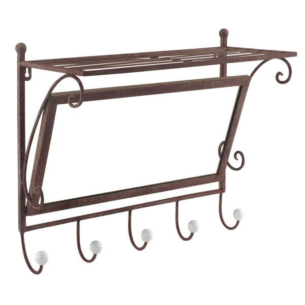 Porte manteaux fer forgé avec miroir, 5 pommeaux