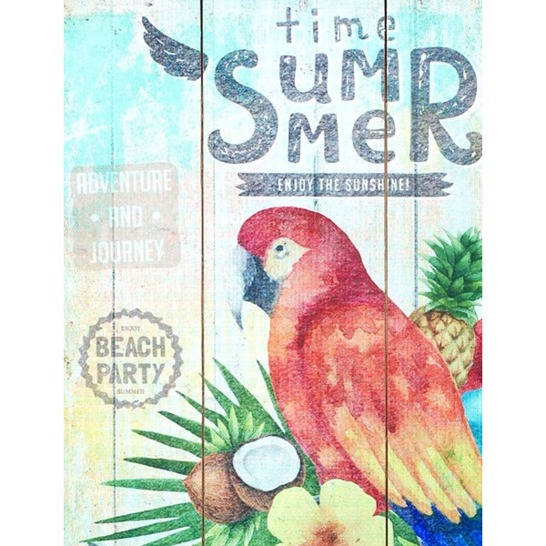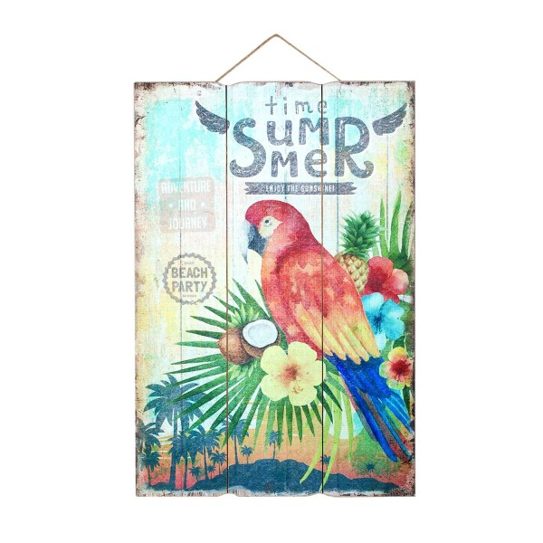 ITINT Plaque Bois vintage Perroquet & Jungle : Summertime, Hauteur 60 cm