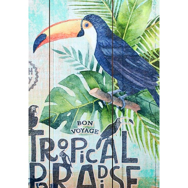 ITINT Plaque Bois vintage Toucan & Jungle : Paradise, H 60 cm