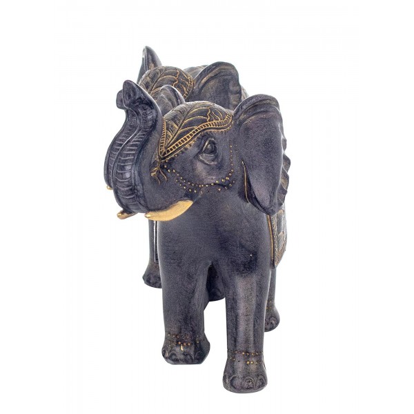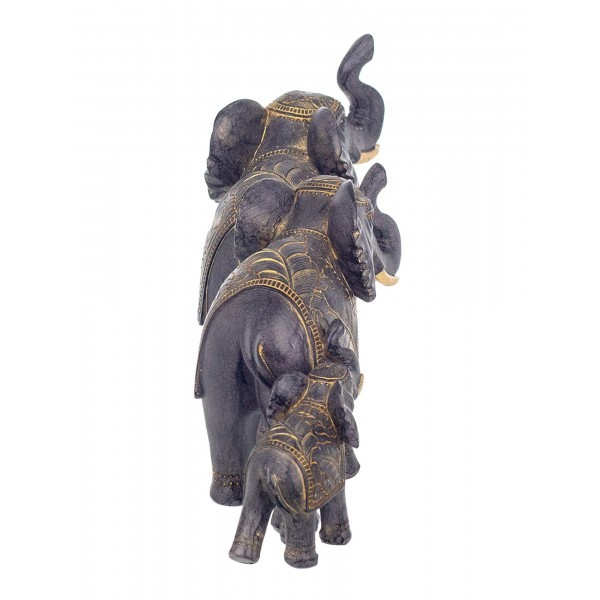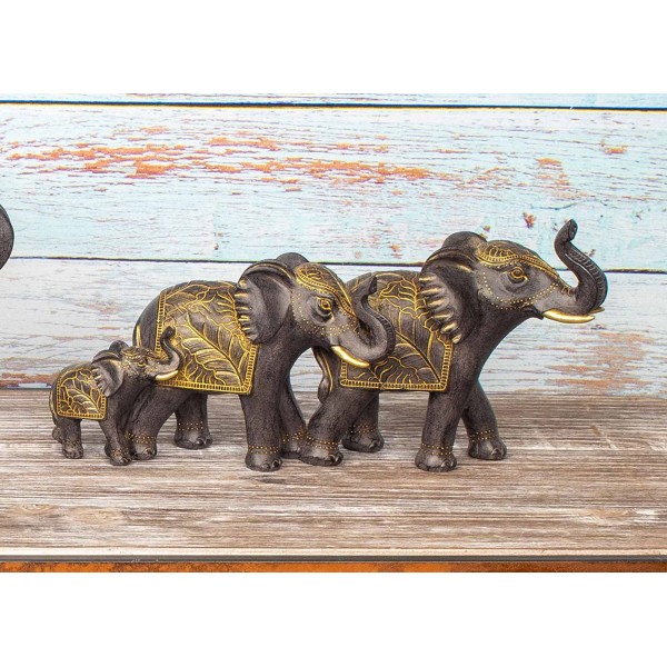 G&S Figurine Famille de 3 éléphants, Modèle Jungle Chic Marron et Doré, L 31 cm
