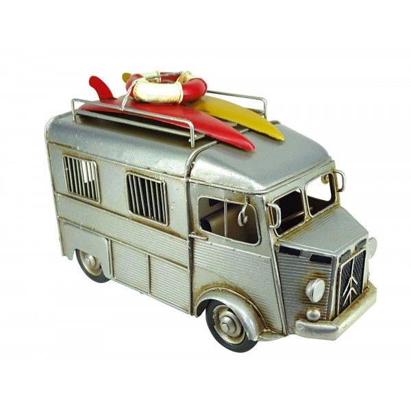 G&S Véhicule en Laiton : Fourgonnette Ancienne Gris Ardoise, Type H, L 25 cm