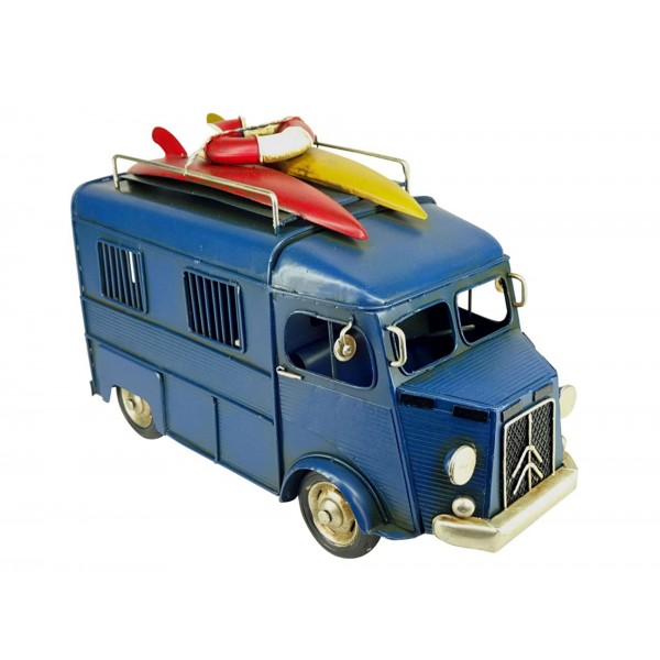 G&S Véhicule en Laiton : Fourgonnette Ancienne, Bleu, Type H, L 25 cm