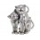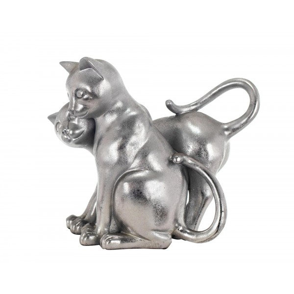 Grande Figurine Deux Chats contemporains, Patine Argent, H 20 cm