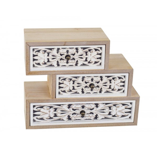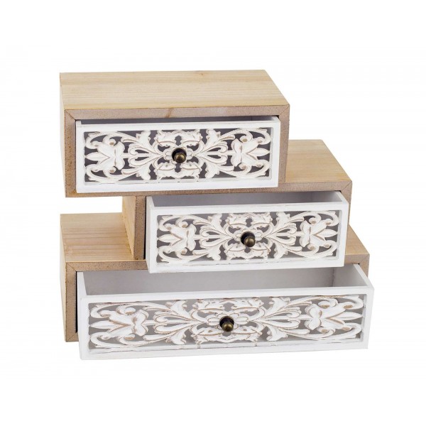 ORIGEN Grande Boite à bijoux, Façades baroques, 3 Compartiments Bois MDF, L 25 cm