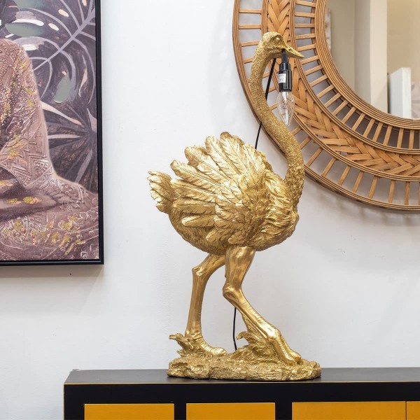 ORIGEN Lampe Autruche Doré en résine XL, Tendance contemporaine, Hauteur 68 cm