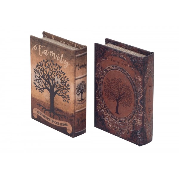 SIGNES GRIMALT Set 2 Boites Livres, Motifs Arbres de Vie, Hauteur 13,5 cm