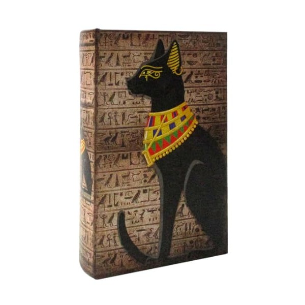 SIGNES GRIMALT Boite livre en bois MDF et polyester, Motif Chat égyptien et hiéroglyphes, hauteur 21 cm