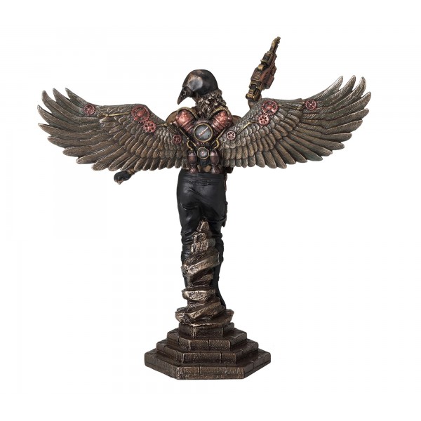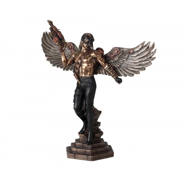 SIGNES GRIMALT Statuette Résine Antic Line : Guerrier ailé Steampunk et Masque de Corbeau, Hauteur 25 cm