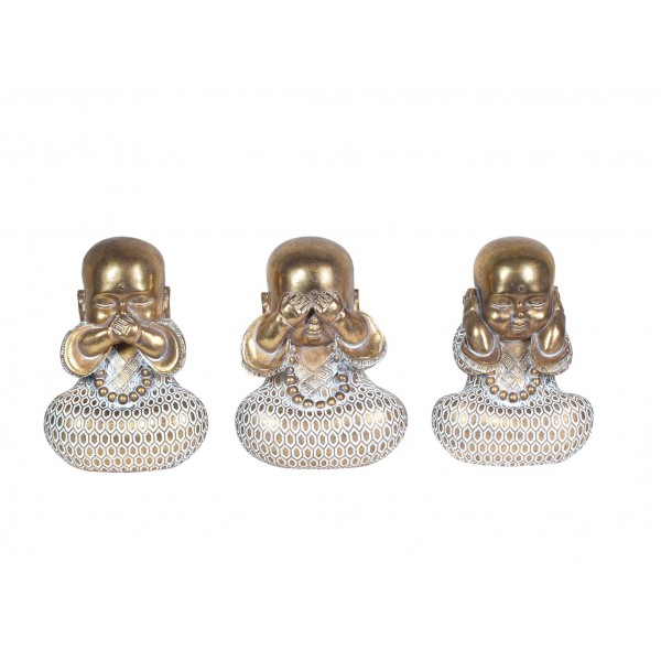 G&S Statuettes Set 3 Moines de la Sagesse, White & Gold, Hauteur15 cm par Figurine