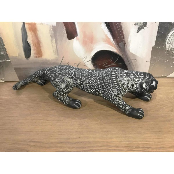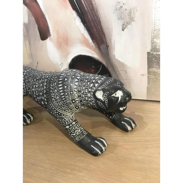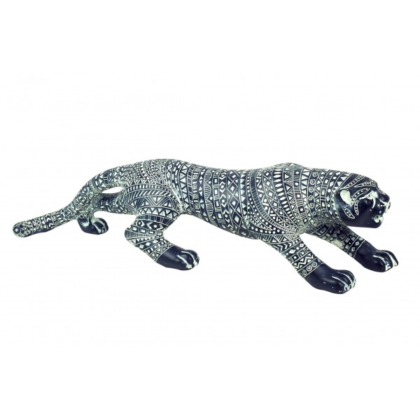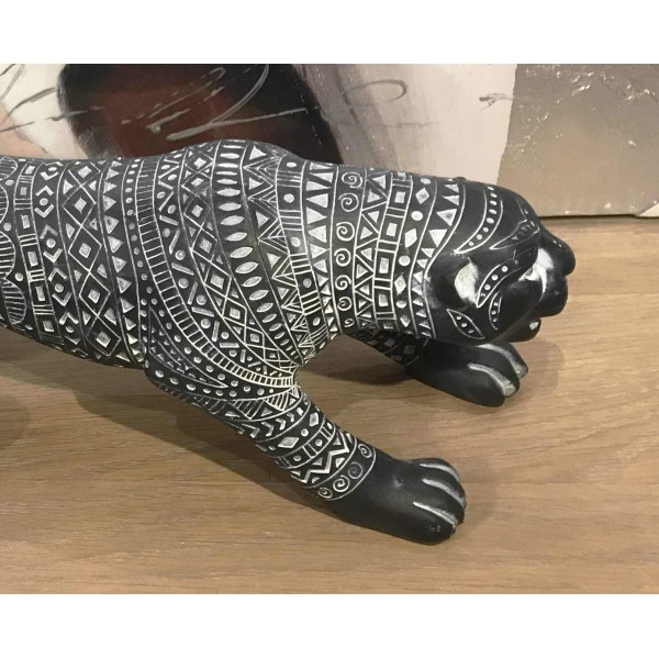 happyDko Statuette Panthère Design : Modèle ETHNIK, Noir et Blanc, Longueur 55 cm
