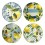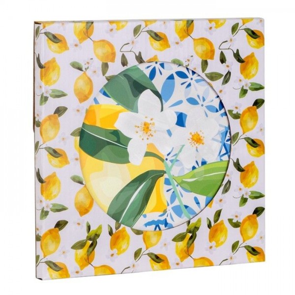 Set de 4 Dessous de Plat Rond en Céramique, 20 cm, Motif Citrons et Fleurs, Style Méditerranéen, Bleu et Jaune