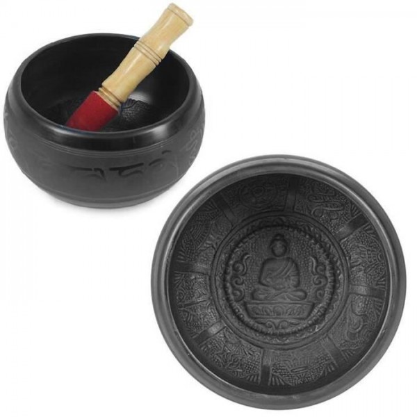 Bol chantant - Zen - Noir - 15.5 x 15.5 x 9 cm - Livré avec maillet
