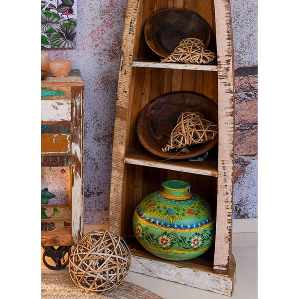 ORIGEN Meuble Bateau 3 Etagères, Bois Naturel avec Effet rétro Vieilli, Collection Nautique, H 190 cm
