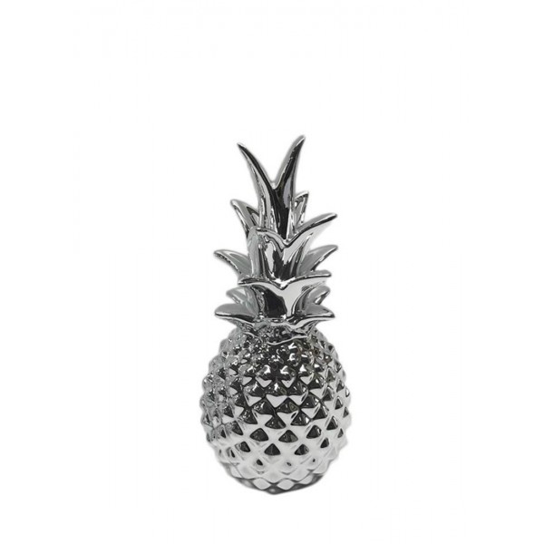 Mini Fruit déco Céramique : Ananas chromé, H 17 cm