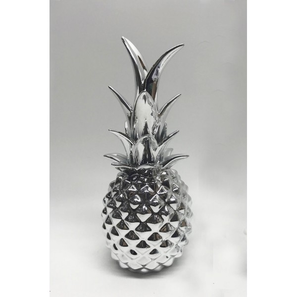 Fruit déco Céramique : Ananas chromé, H 26 cm