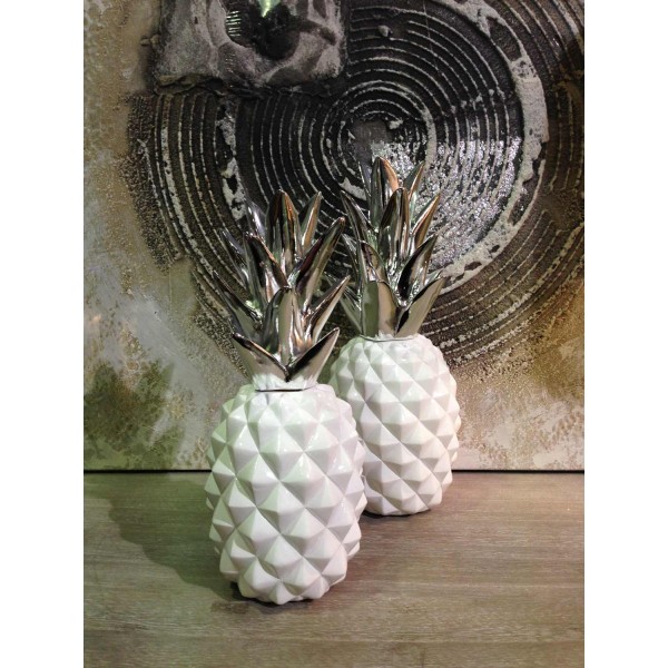 Ananas décoratif couleur Blanc & Chrome, version laquée contemporaine