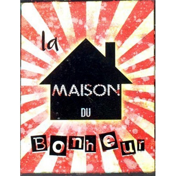 Plaque métal murale : La Maison du Bonheur, H 33 cm